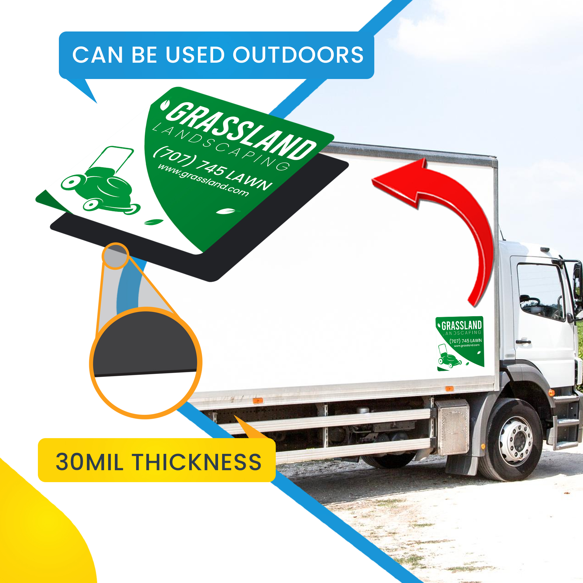 Maximize visibility with our 24" x 24" extra large car magnets, made from durable 30 mil material for cars, trucks, and metal surfaces. Designed with strong holding power!, these high-quality magnets stay securely in place yet remove easily without damage. Featuring full-color, full-bleed printing with UV-resistant inks, they ensure long-lasting color and durability. Ideal for business advertising, contractor signage, and event promotions, these custom large magnets offer a sleek, professional display. Proudly made in the USA, they provide premium durability with no setup fees and vibrant marketing potential.