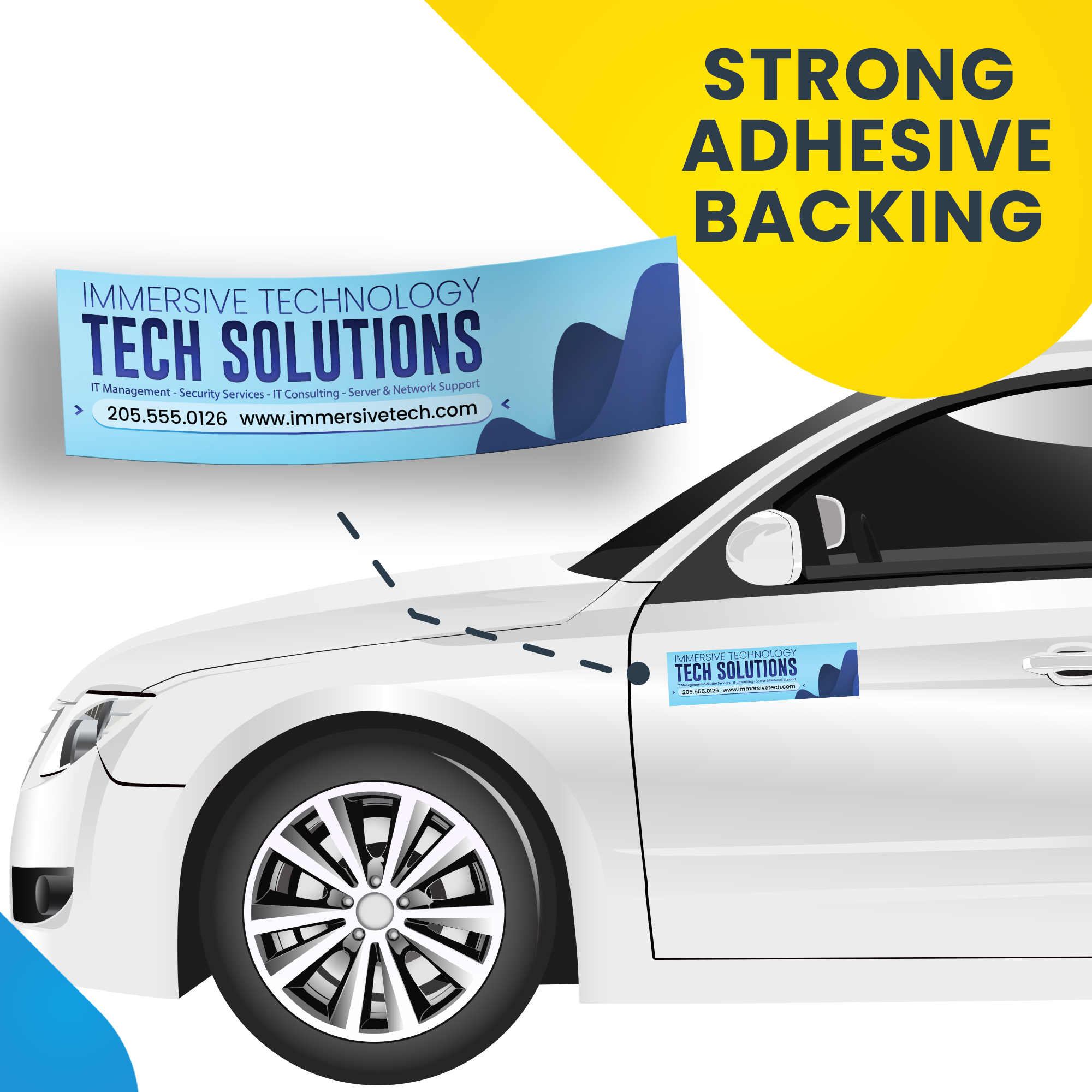 Promote your brand with our 3"x10" rectangle removable decals, made from outdoor durable material for windows, vehicles, and smooth surfaces. These high-quality decals feature full-color, full-bleed printing with UV-resistant inks, ensuring long-lasting color and visibility. They adhere securely but are easily removable with no residue for up to 6 months, allowing for versatile promotional use. Perfect for business advertising, event promotions, and seasonal campaigns, these removable decals deliver a sleek, professional look. Proudly made in the USA, they provide premium durability with no setup fees and creative branding potential.